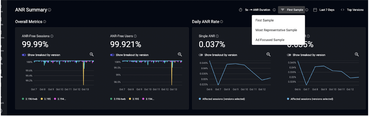 Moreover, Embrace has the ability to capture every ANR that happens in production — unlike alternative platforms that rely on sampling data and often miss critical incidents that may not happen in large volumes. Instead, Embrace captures every ANR occurrence in production, providing a comprehensive view of app performance for every user. This means that developers get an accurate representation of all the different types of ANRs that occur in their app.