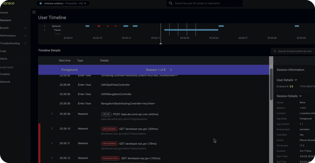 Fix issues faster and boost revenue with Embrace’s powerful monitoring platform.
